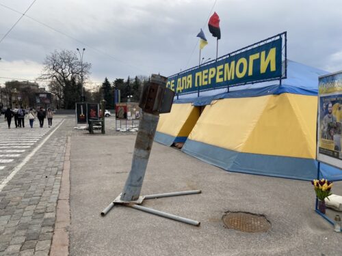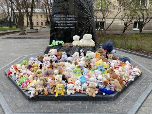 ハルキウは連日のように攻撃を受けていた。街の中心部には、他のウクライナの街と同様に戦死者を追悼する広場と追悼碑が設置されていたが、その中には戦争で犠牲になった多くの幼児たちを追悼する碑もあった。