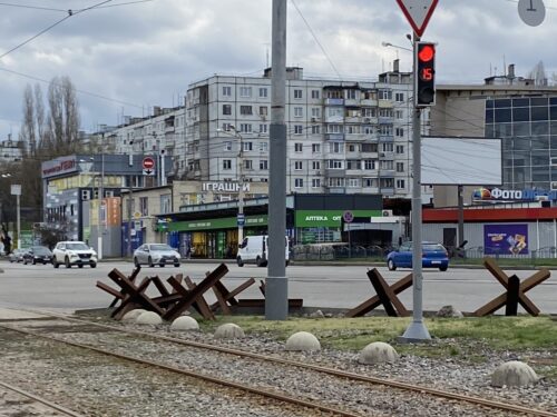 ハルキウはロシアからわずか三十キロなので、空襲だけではなく、「地上侵攻」の脅威にも晒されている。その為か市街地各所に、三本の鉄筋を互い違いに溶接して作った「対戦車障害物」が設置されていた。